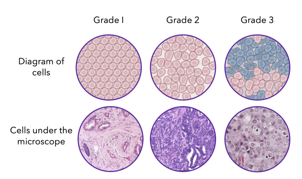 Grade III means the cancer’s cellular appearance looks the most different than normal breast cells.