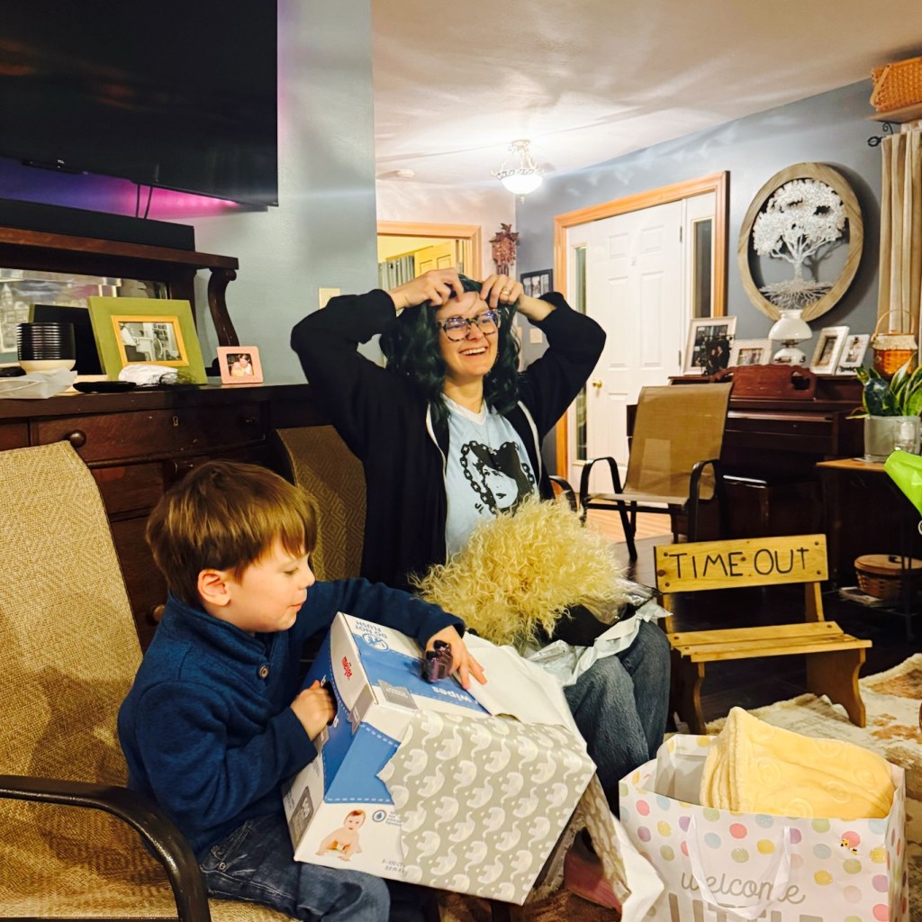 Thank you Tatum for organizing a wig party and baby sprinkle for me. And thank you to Aunt Dawn Ann for hosting and to all of my family who helped to make it happen. I am so grateful to have such a wonderful family. Thank you for all of the wigs! Now I go everywhere in style. I wear a different wig everyday!